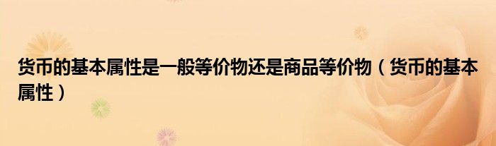货币的基本属性是一般等价物还是商品等价物(货币的基本属性)