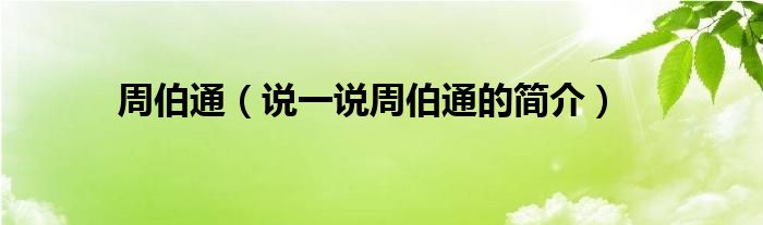 夏弥来为大家解答以下的问题,周伯通,说一说周伯通的简介,现在让我们一起来看看吧!