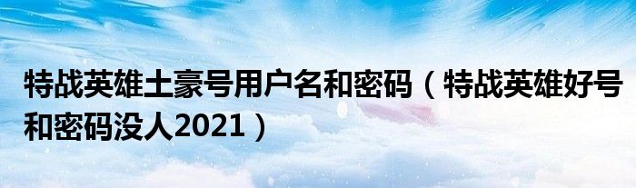 特战英雄土豪号用户名和密码(特战英雄好号和密码没人2021)