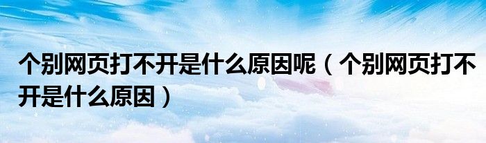 关于个别网页打不开是什么原因呢,个别网页打不开是什么原因这个很多人还不知道,今天菲菲来为大家解答以上的问题,现在让我们一起来看看吧!