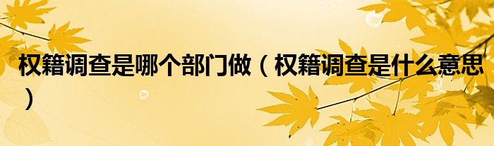 关于权籍调查是哪个部门做,权籍调查是什么意思这个很多人还不知道,今天菲菲来为大家解答以上的问题,现在让我们一起来看看吧!