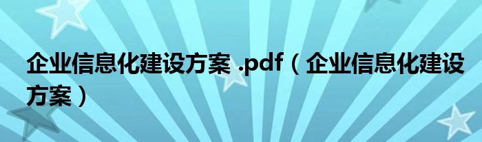 关于企业信息化建设方案 .pdf,企业信息化建设方案这个很多人还不知道,今天菲菲来为大家解答以上的问题,现在让我们一起来看看吧!