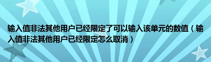 输入值非法其他用户已经限定了可以输入该单元的数值(输入值非法其他用户已经限定怎么...