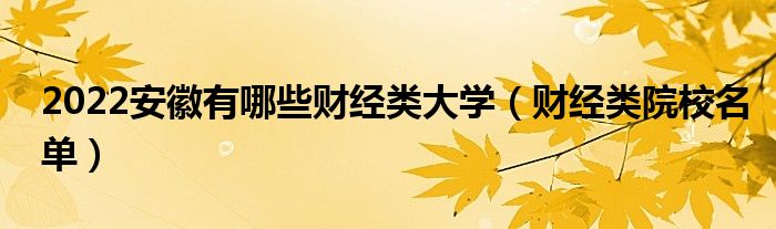 2022安徽有哪些财经类大学(财经类院校名单)