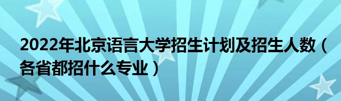 大家好,乐儿来为大家解答以下问题,2022年北京语言大学招生计划及招生人数,各省都招什么专业很多人还不知道,现在让我们一起来看看吧!