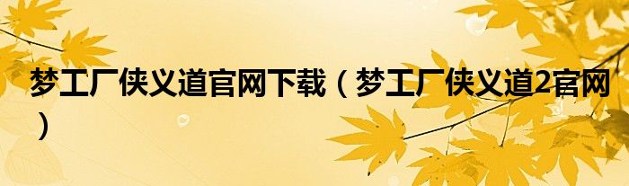 梦工厂侠义道官网下载(梦工厂侠义道2官网)