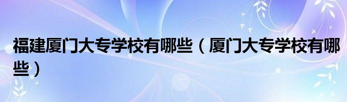 福建厦门大专学校有哪些(厦门大专学校有哪些)
