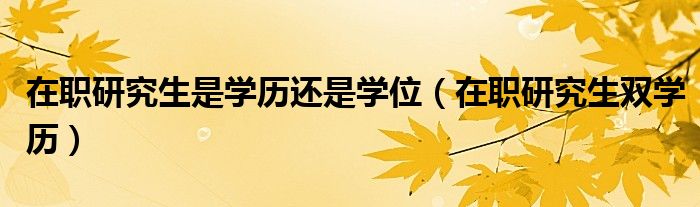 关于在职研究生是学历还是学位,在职研究生双学历这个很多人还不知道,今天菲菲来为大家解答以上的问题,现在让我们一起来看看吧!
