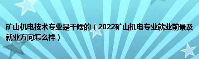 矿山机电技术专业是干啥的(2022矿山机电专业就业前景及就业方向怎么样)