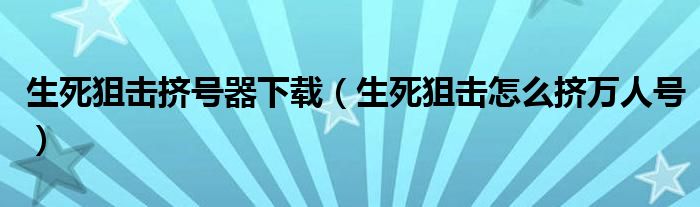 关于生死狙击挤号器下载,生死狙击怎么挤万人号这个很多人还不知道,今天菲菲来为大家解答以上的问题,现在让我们一起来看看吧!
