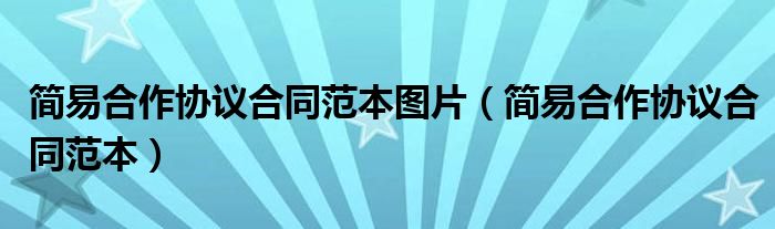 关于简易合作协议合同范本图片,简易合作协议合同范本这个很多人还不知道,今天菲菲来为大家解答以上的问题,现在让我们一起来看看吧!