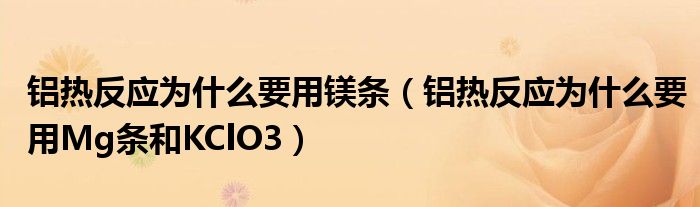 关于铝热反应为什么要用镁条,铝热反应为什么要用Mg条和KClO3这个很多人还不知道,今天菲菲来为大家解答以上的问题,现在让我们一起来看看吧!