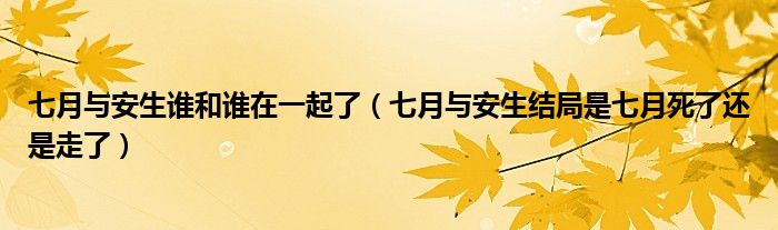 关于七月与安生谁和谁在一起了,七月与安生结局是七月死了还是走了这个很多人还不知道,今天菲菲来为大家解答以上的问题,现在让我们一起来看看吧!