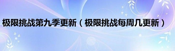 极限挑战第九季更新(极限挑战每周几更新)
