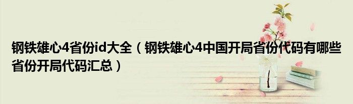 1、钢铁雄心4改派中国开局省份代码?钢铁雄心4怎么改派中国开局省份?相信大家一定很想知道吧,那么就和小编一起来看看吧。