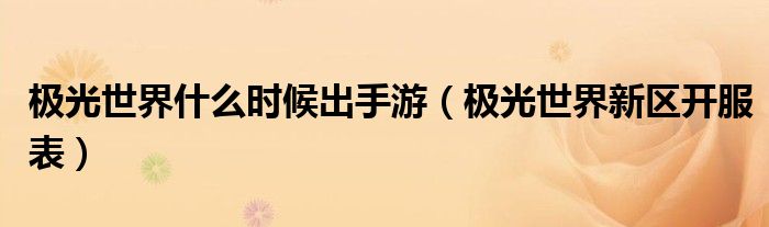 极光世界什么时候出手游(极光世界新区开服表)