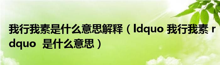 关于我行我素是什么意思解释,ldquo 我行我素 rdquo 是什么意思这个很多人还不知道,今天菲菲来为大家解答以上的问题,现在让我们一起来看看吧!