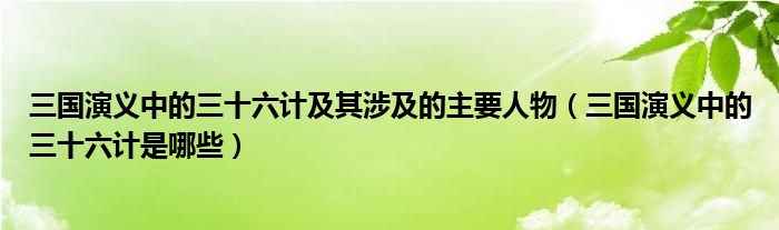 关于三国演义中的三十六计及其涉及的主要人物,三国演义中的三十六计是哪些这个很多人还不知道,今天菲菲来为大家解答以上的问题,现在让我们一起来看看吧!