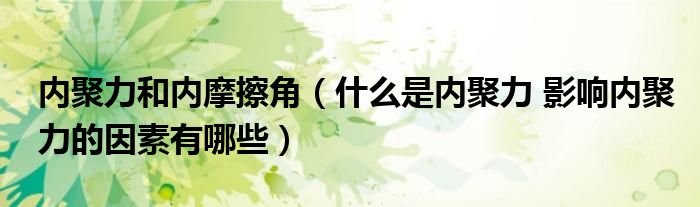 大家好,小联来为大家解答以上的问题。内聚力和内摩擦角,什么是内聚力 影响内聚力的因素有哪些这个很多人还不知道,现在让我们一起来看看吧!