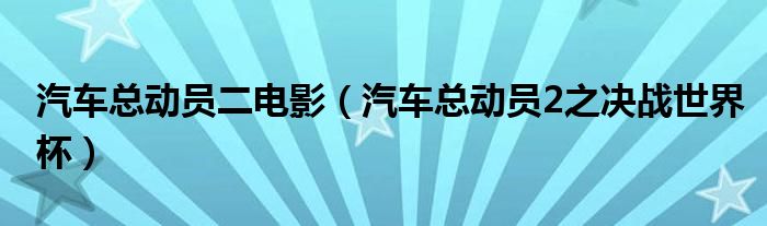 关于汽车总动员二电影,汽车总动员2之决战世界杯这个很多人还不知道,今天菲菲来为大家解答以上的问题,现在让我们一起来看看吧!