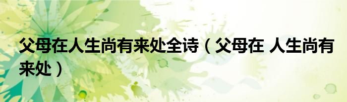 父母在人生尚有来处全诗(父母在人生尚有来处)