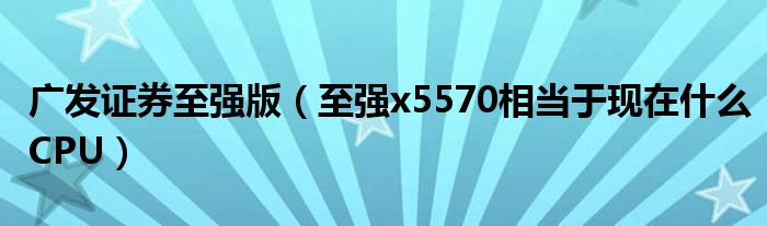 关于广发证券至强版,至强x5570相当于现在什么CPU这个很多人还不知道,今天菲菲来为大家解答以上的问题,现在让我们一起来看看吧!