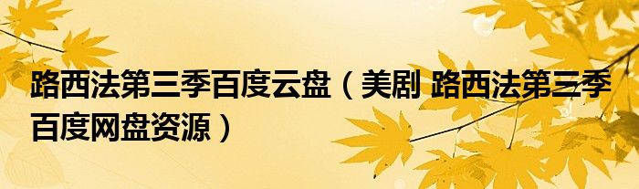 最佳答案关于路西法第三季百度云盘,美剧 路西法第三季 百度网盘资源这个很多人还不知道,今天菲菲来为大家解答以上的问题,现在让我们一起来看看吧!1、第三季明才呢。本文到此分享完毕,希望对大家有所帮助。