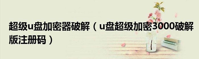 超级u盘加密器破解(u盘超级加密3000破解版注册码)