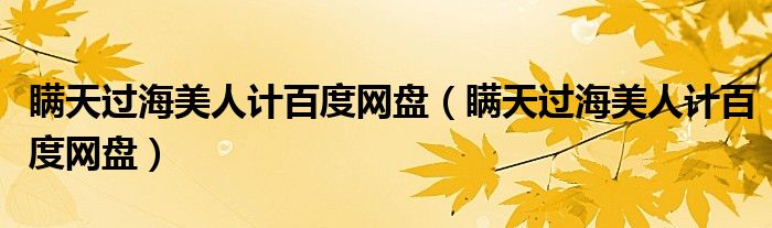 瞒天过海美人计百度网盘(瞒天过海美人计百度网盘)