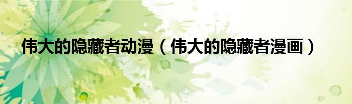 伟大的隐藏者动漫(伟大的隐藏者漫画)