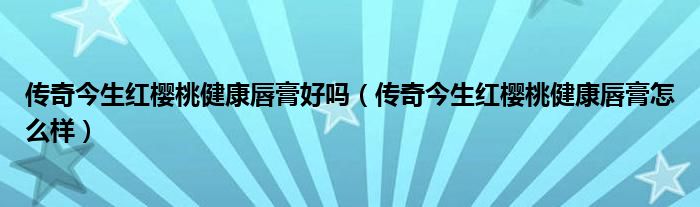 大家好,小晋来为大家解答以下问题,关于传奇今生红樱桃健康唇膏好吗,传奇今生红樱桃健康唇膏怎么样很多人还不知道,今天让我们一起来看看吧!