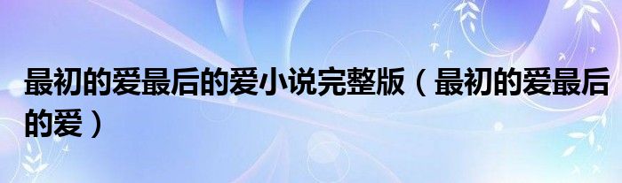 大家好,小华来为大家解答以上的问题。最初的爱最后的爱小说完整版,最初的爱最后的爱这个很多人还不知道,现在让我们一起来看看吧!