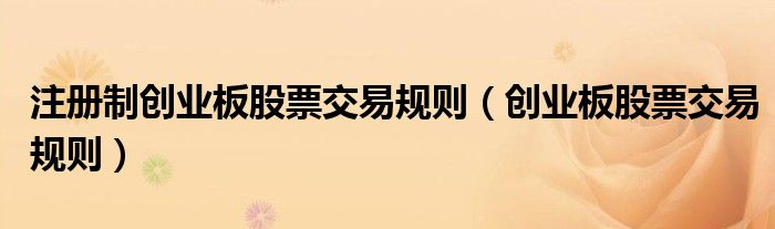 注册制创业板股票交易规则(创业板股票交易规则)