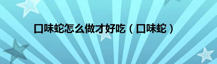 大家好,我是小科,我来为大家解答以上问题。口味蛇怎么做才好吃,口味蛇很多人还不知道,现在让我们一起来看看吧!