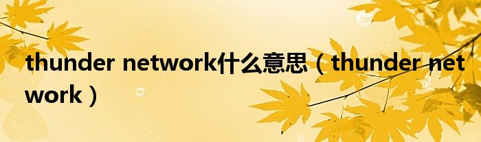 thunder network什么意思(thunder network)