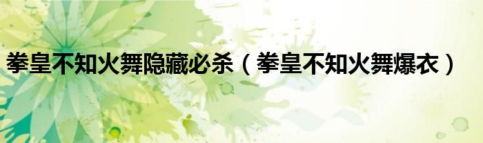 拳皇不知火舞隐藏必杀(拳皇不知火舞爆衣)