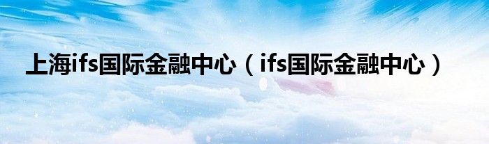 最佳答案大家好,小联来为大家解答以上的问题。上海ifs国际金融中心,ifs国际金融中心这个很多人还不知道,现在让我们一起来看看吧!1、IFS是国际金融中心英文单词(International Finance Center)的缩写。2、国际金融中心(International Finance Center)是聚集了大量金融机构和相关服务产业,全面集中地开...