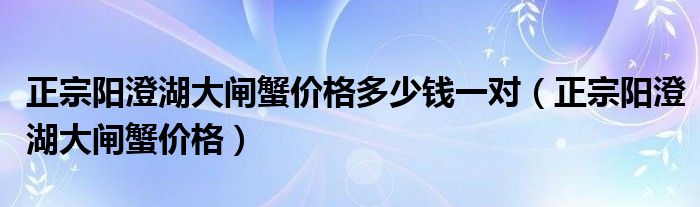 正宗阳澄湖大闸蟹价格多少钱一对(正宗阳澄湖大闸蟹价格)