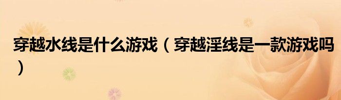 穿越水线是什么游戏(穿越淫线是一款游戏吗)