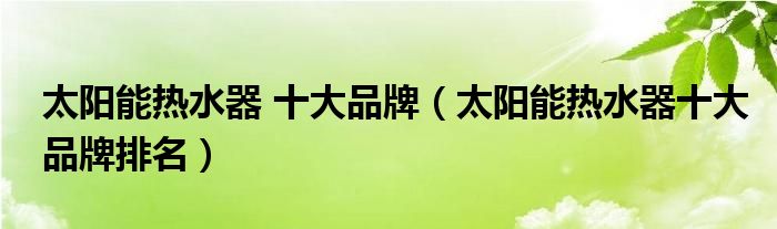 太阳能热水器 十大品牌(太阳能热水器十大品牌排名)