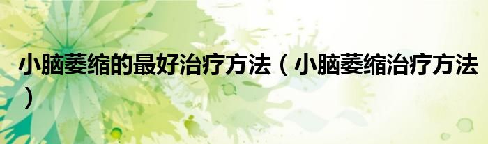 大家好,乐天来为大家解答以下的问题,小脑萎缩的最好治疗方法,小脑萎缩治疗方法很多人还不知道,现在让我们一起来看看吧!