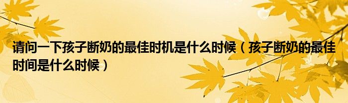 大家好,乐天来为大家解答以下的问题,请问一下孩子断奶的最佳时机是什么时候,孩子断奶的最佳时间是什么时候很多人还不知道,现在让我们一起来看看吧!