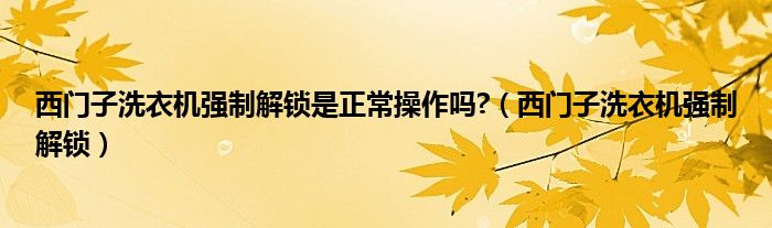 大家好,小晋来为大家解答以下问题,关于西门子洗衣机强制解锁是正常操作吗?,西门子洗衣机强制解锁很多人还不知道,今天让我们一起来看看吧!