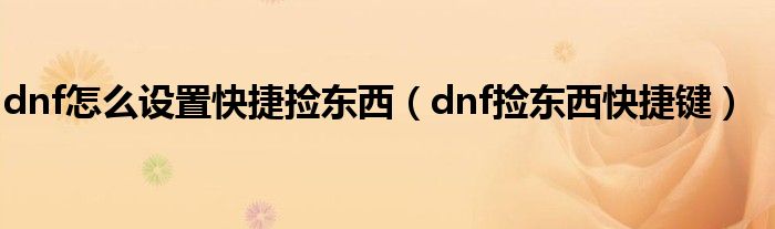 关于dnf怎么设置快捷捡东西,dnf捡东西快捷键这个很多人还不知道,今天菲菲来为大家解答以上的问题,现在让我们一起来看看吧!