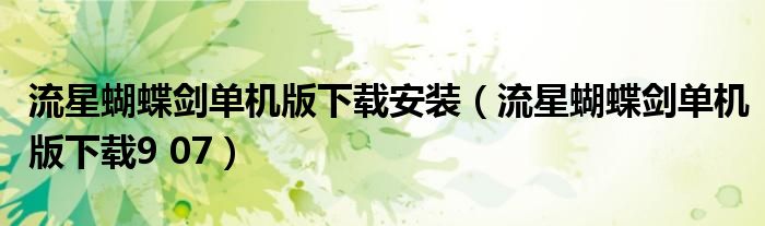 关于流星蝴蝶剑单机版下载安装,流星蝴蝶剑单机版下载9 07这个很多人还不知道,今天菲菲来为大家解答以上的问题,现在让我们一起来看看吧!