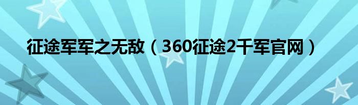 关于征途军军之无敌,360征途2千军官网这个很多人还不知道,今天菲菲来为大家解答以上的问题,现在让我们一起来看看吧!