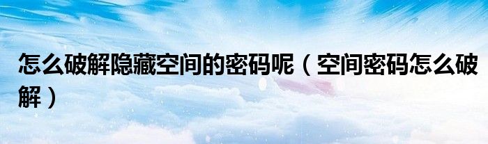 怎么破解隐藏空间的密码呢(空间密码怎么破解)
