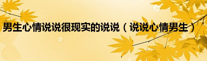 大家好,小晋来为大家解答以下问题,关于男生心情说说很现实的说说,说说心情男生很多人还不知道,今天让我们一起来看看吧!