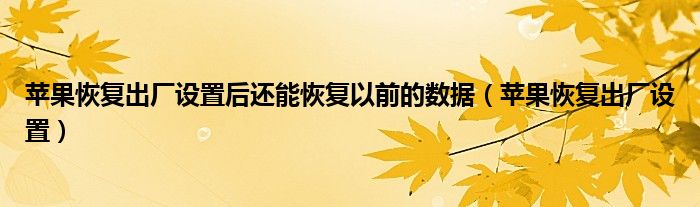 大家好,来宝来为大家解答以下问题,苹果恢复出厂设置后还能恢复以前的数据,苹果恢复出厂设置很多人还不知道,今天让我们一起来看看吧!
