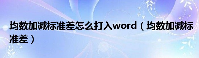 关于均数加减标准差怎么打入word,均数加减标准差这个很多人还不知道,今天菲菲来为大家解答以上的问题,现在让我们一起来看看吧!